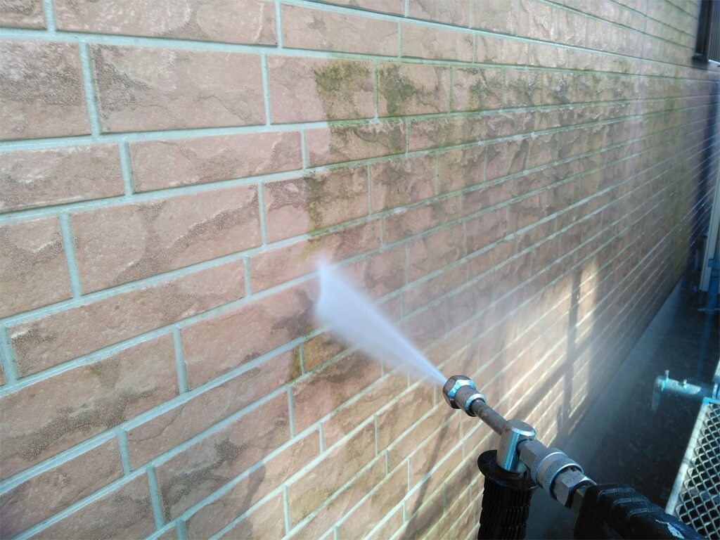 手作業での清掃に比べて時間を節約しつつ、外壁やタイルの表面がキレイになり、美しい仕上がりを実現。
